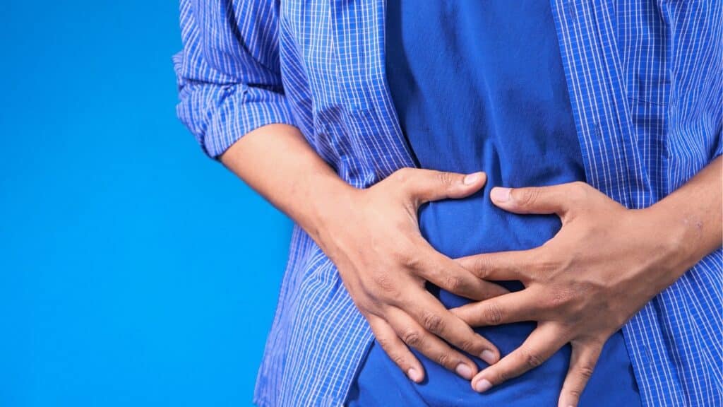 Imagem mostra pessoa com mão no abdômen, o que pode ser um sintoma da gastroparesia.