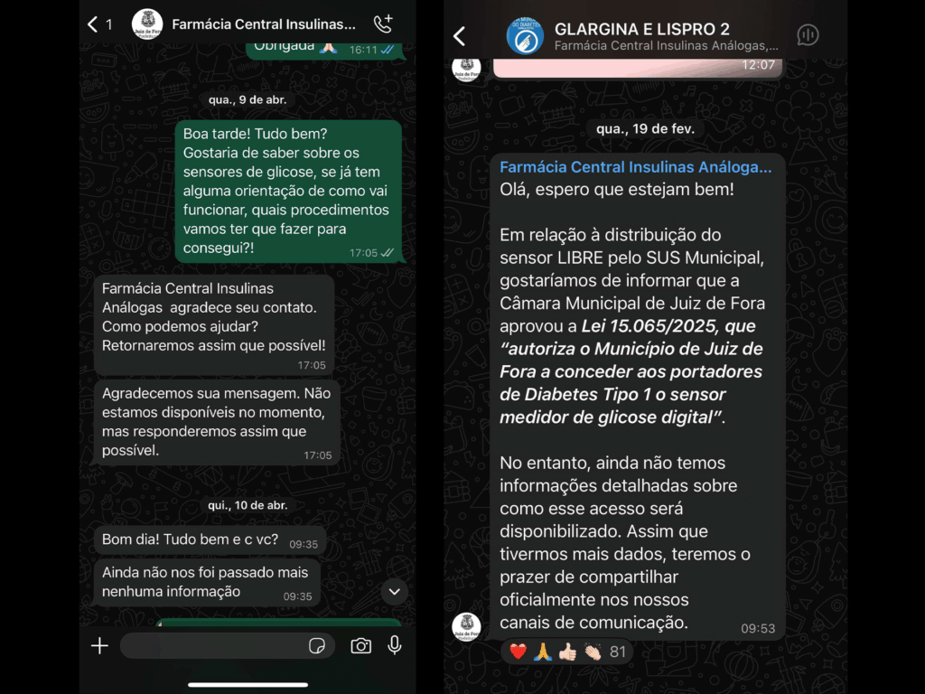 Fabiane Garcia, 41 anos, tem diabetes LADA, uma forma autoimune da doença. Ela relata que chegou a procurar a farmácia de alto custo da cidade, mas também não recebeu informações. “É muito triste. Esse dispositivo não é um luxo. Ele evita picos de glicose, reduz internações e melhora a qualidade de vida”, afirma.