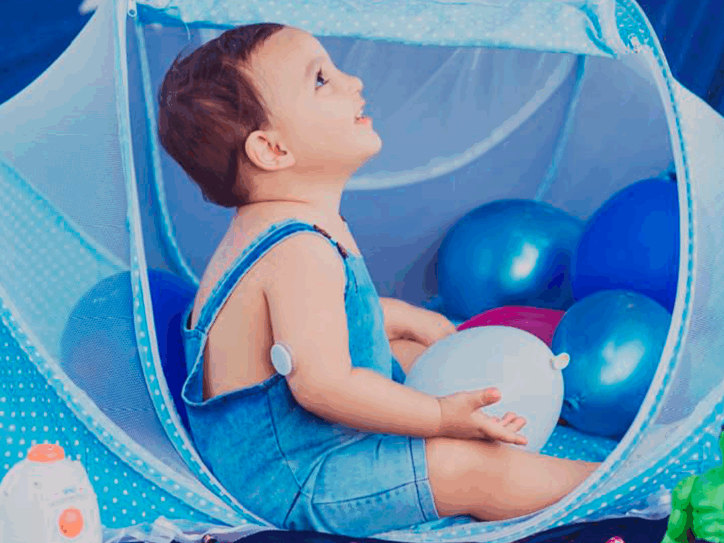 O que poderia ser apenas mais um momento de rotina — a aplicação de um dispositivo no braço — transformou-se em símbolo de coragem e leveza no cuidado com o diabetes tipo 1, diagnosticado quando Ravi tinha apenas 1 ano e 2 meses.