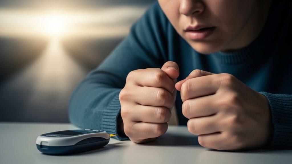 Este é, sem dúvida, um dos maiores receios. A hipoglicemia (glicose muito baixa) pode causar tremores, suor frio, confusão e, em casos graves, desmaios. Por isso, o medo de ter uma crise em público, enquanto dirige ou dorme, é constante. Para muitos, a ansiedade de sentir os sintomas de uma queda de glicose é quase tão assustadora quanto a queda em si.