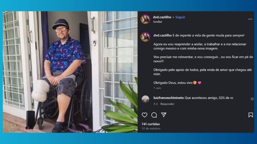 No entanto, sua mensagem principal foi, acima de tudo, de gratidão e determinação. “Obrigado Deus, estou vivo”, escreveu ele em 12 de outubro, já em casa. “Vou precisar me reinventar, e vou conseguir… eu vou ficar em pé de novo!!!” Assim, ele deixou o hospital “grato por estar vivo e pronto para recomeçar”.