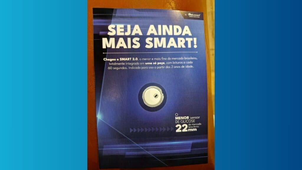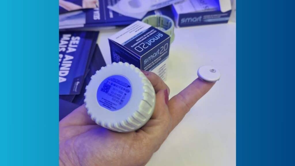 O Smart 2.0 se destaca imediatamente pelo seu tamanho. Conforme o material de divulgação apresentado, ele assume o posto de menor sensor de glicose disponível no mercado nacional. Mas suas inovações vão muito além das dimensões. O dispositivo, por exemplo, possui uma duração estendida de 15 dias. Além disso, ele não necessita de um transmissor separado, pois o componente já está totalmente integrado. Isso significa que o usuário não precisa mais escanear o sensor para obter suas leituras de glicose.