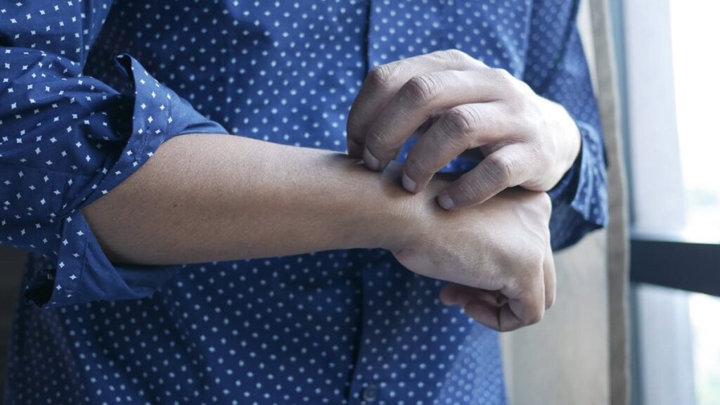O principal motivo para a coceira é o ressecamento. Segundo o Dr. Felipe Ribeiro, a pele da pessoa com o diabetes enfrenta um desafio duplo. “Naturalmente, a pele, ela tende a sempre se desidratar, perder água”, explicou o dermatologista na entrevista. No entanto, em quem tem a condição, o problema é intensificado. “O primeiro [problema] é que ela perde muita água e o segundo é que pouca água chega na pele, por isso a pele seca, coça”, completou.