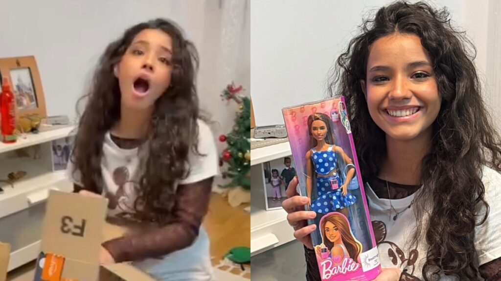 Giovanna, hoje com 20 anos, convive com diabetes tipo 1 há 15 anos e se emocionou ao receber uma boneca Barbie que também representa a condição.