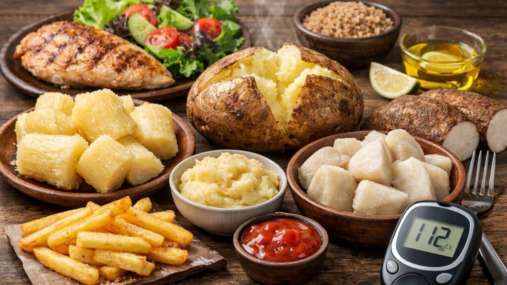 Não existe resposta única. O inhame costuma provocar elevação mais gradual. A batata inglesa tende a subir mais rapidamente. A mandioca ocupa posição intermediária, mas exige atenção à quantidade.