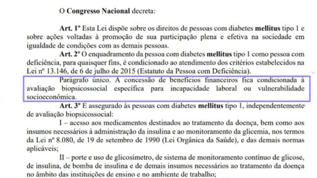 O PL 5868 não reconhece automaticamente o diabetes tipo 1 como deficiência. O enquadramento depende dos critérios do Estatuto da Pessoa com Deficiência e de avaliação biopsicossocial para benefícios financeiros.