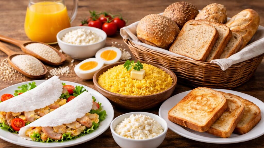 De acordo com a nutricionista, iniciar o café da manhã com pequenas quantidades é uma estratégia prática. Para a tapioca ou cuscuz, recomenda-se duas a três colheres de sopa da goma ou do milho. Para pães e torradas, a orientação é reduzir o miolo, equilibrando a ingestão de carboidratos.