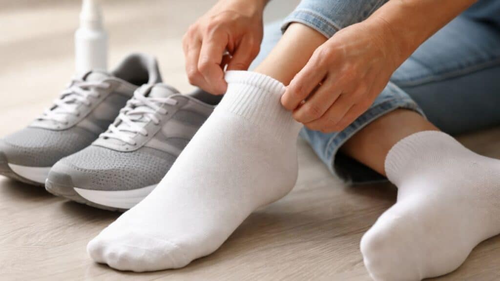 A escolha da meia também integra a prevenção dessa condição. Andréa Costa orienta o uso de meias de algodão, evitando tecidos sintéticos. Além disso, recomenda cores claras, que facilitam a visualização de possíveis secreções ou sangramentos.