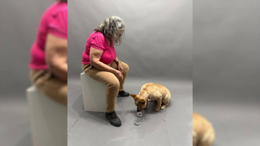 A virada veio de dentro da própria família. Seu filho, Glauco Lima, adestrador e pioneiro no treinamento de cães de alerta médico no país, treinou uma cadela especialmente para monitorá-la. O sistema é direto: um latido para hiperglicemia, uma pata na perna para hipoglicemia.