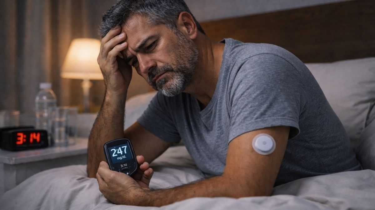A hipoglicemia noturna, que é a queda da glicose enquanto a pessoa dorme, pode provocar suor frio, tremores, confusão e acordar repentino. Além disso, o medo de uma queda mais grave faz com que muitas pessoas durmam em alerta. Nesse contexto, o sono profundo é interrompido, e o corpo não se recupera como deveria.